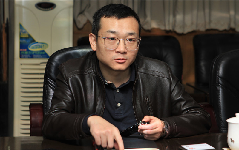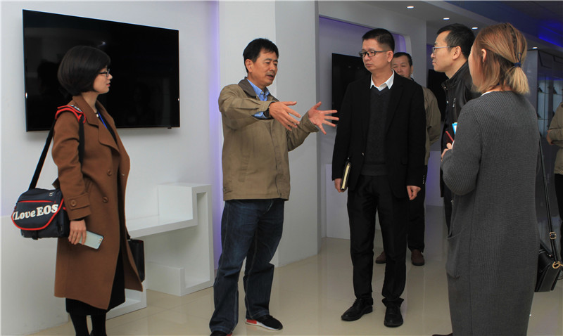 图为东方智能仪表公司董事长黄志刚与工作组交流