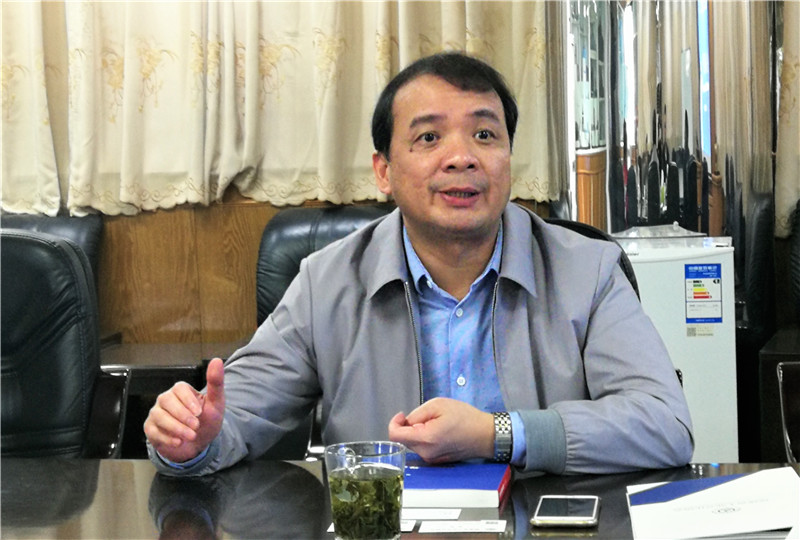 图为龙溪股份总经理陈晋辉(左一)介绍产品特点