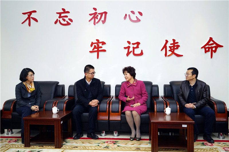 图为福贞金属包装董事长庄素贞介绍企业发展历程