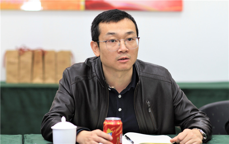 图为吉邦电子董事长陈毅力介绍企业发展现状