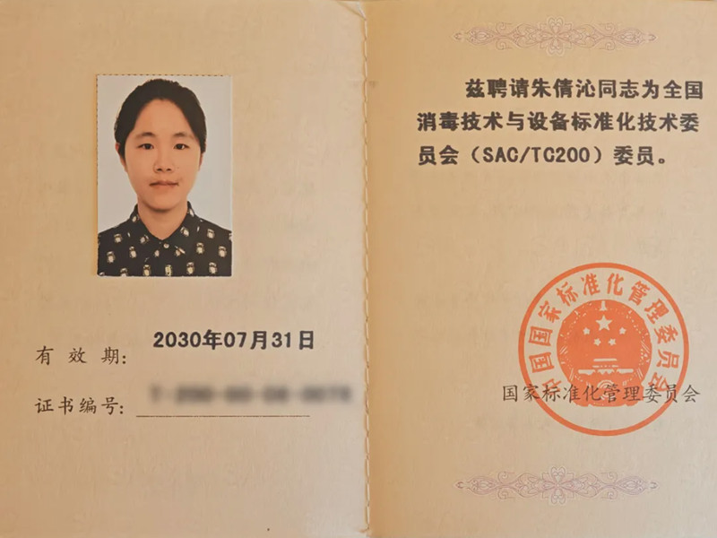 厦门当盛新材料有限公司技术总监朱倩沁成功获任第六届全国消毒技术与设备标准化技术委员会(SAC/TC 200)委员,并同时担任国际标准化组织医疗产品灭菌技术委员会(ISO/TC 198)的中国注册专家。